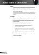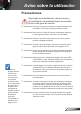 Aviso sobre la utilización Precauciones Siga todas las advertencias, precauciones y procedimientos de mantenimiento recomendados en esta guía del usuario. ▀■ Advertencia- No mire por la lente del proyector cuando la lámpara está encendida. El brillo de la luz puede dañarle los ojos. ▀■ Advertencia- Para reducir el riesgo de incendio o descargas eléctricas, no exponga el proyector a la lluvia ni a la humedad. ▀■ Advertencia- No abra o desmonte este proyector, ya que se podrían producir descargas eléctricas.