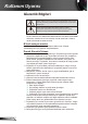 Kullanım Uyarısı Önlemler Lütfen bu kullanıcı kılavuzunda tavsiye edilen tüm uyarılar, önlemler ve bakımı izleyin. Lamba ömrünün sonuna ulaştığında, lamba modülü yenisiyle değiştirilene kadar projektör açılmayacaktır. Lambayı yenisiyle değiştirmek için 76. ve 77. sayfadaki “Lambayı Yenisiyle Değiştirme” bölümü altındaki prosedürler listesini izleyin. ▀■ Uyarı- Lamba açıkken projektörün merceğinin içine bakmayın. Parlak ışık gözlerinize zarar verebilir.
