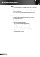 Kullanım Uyarısı Göz Güvenliği Uyarıları ▀■ Daima projektöre doğrudan bakmaktan/gözünüzü doğrultmaktan kaçının. Işına mümkün olduğunca arkanızı verin. ▀■ Projektör sınıfta kullanıldığında, ekranda birşey göstermeleri istendiğinde öğrencileri yeterince gözetim altında tutun. ▀■ Lamba gücünü en aza indirgemek için, ortamdaki ışık seviyesini azaltmak için oda jaluzileri kullanın.