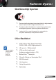 Ekler Lamba kapağındaki vidalar ve lamba çıkarılmamalıdır. 1 2 Lamba kapağı projektöre geri yerleştirilmemişse projektör açılamaz. 3 4 Lambanın cam alanına dokunmayın. El yağı lambanın kırılmasına sebep olabilir. Eğer yanlışlıkla dokunursanız, lamba modülünü temizlemek için kuru bez kullanın. Lamba Değiştirme Prosedürü: 1. 2. 3. 4. 5. 6. 7. " " düğmesine basarak projektöre giden gücü kapatın. En az 30 dakika boyunca projektörün soğumasına izin verin. Güç kablosunu sökün.