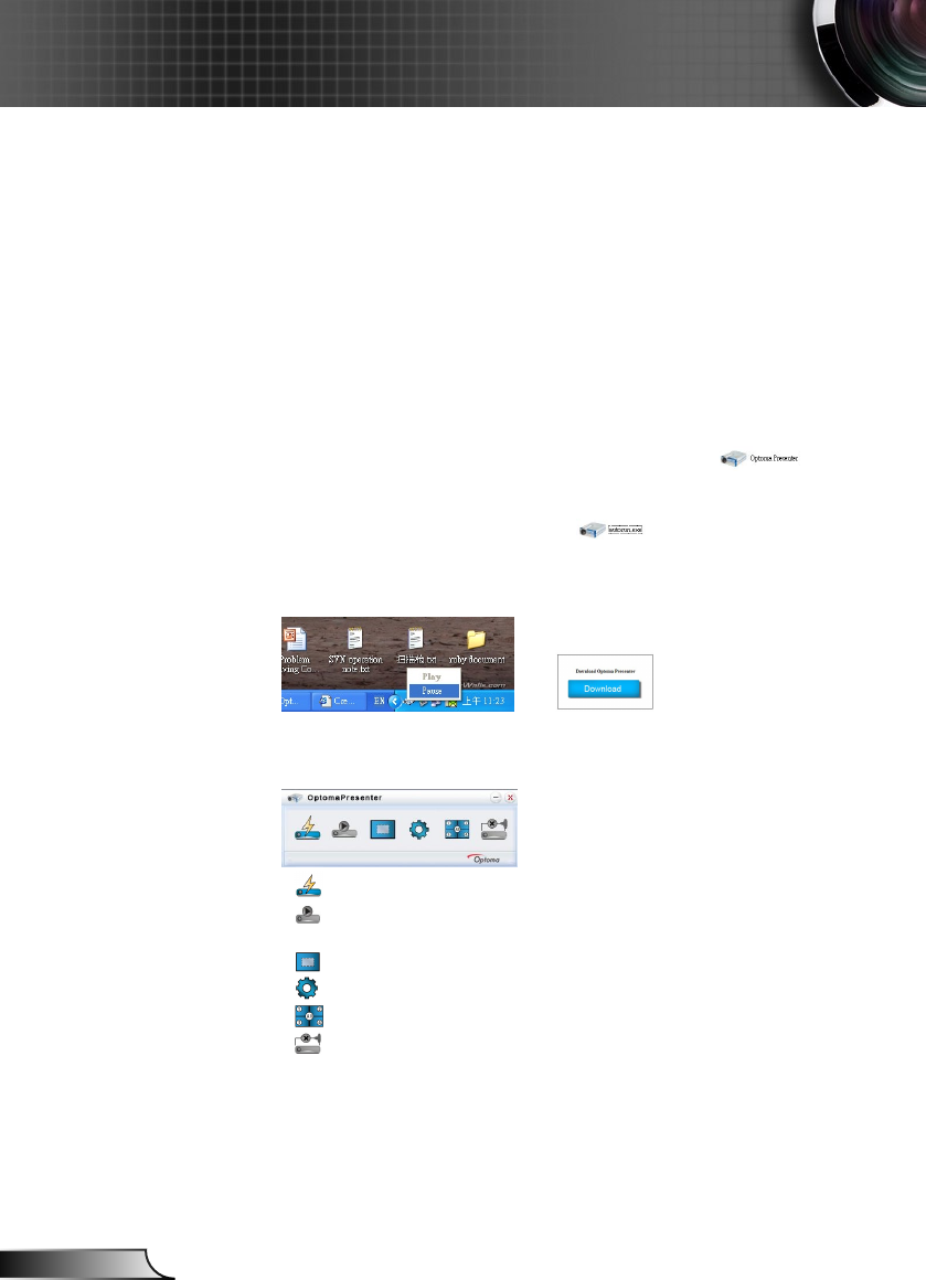 Optoma Presenter uygulaması, bir ana bilgisayardaki uzak
