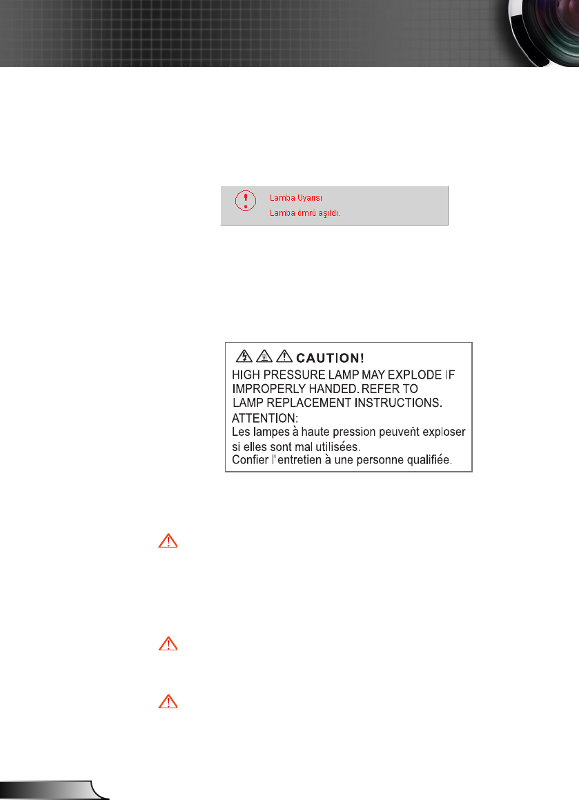 Bu mesajı gördüğünüzde, lambayı en kısa sürede değiştirmek