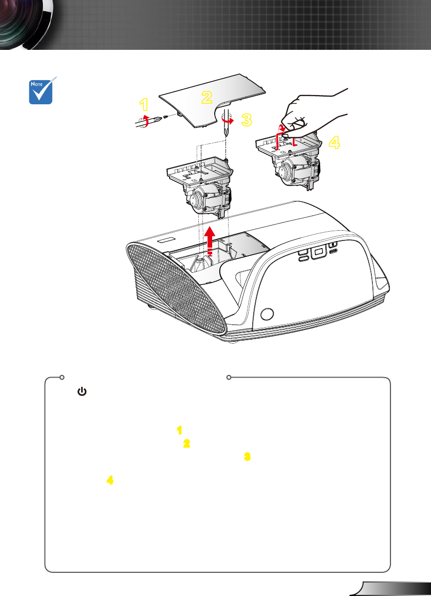 8. Lamba modülü değiştirildikten sonra projektörü açın ve “Lamba