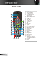 Introduction Remote Control 1 2 12 3 13 4 14 5 15 6 16 7 17 8 18 9 19 10 20 11 21 English 10 22 23 1. LED Indicator 2. Power On/Off 3. Four Directional Select Keys 4. Mouse Right Click 5. Page Up 6. Re-Sync 7. Page Down 8. Volume +/9. 3D 10. AV mute 11. Video 12. PC/Mouse control 13. Mouse Left Click 14. Enter/Help 15. Source 16. Keystone +/17. Menu 18. Brightness 19. No function 20. S-Video 21. Numbered keypad (for password input) 22. Freeze 23.