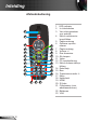 Inleiding Afstandsbediening 1 2 12 3 13 4 14 5 15 6 16 7 17 8 18 9 19 10 20 11 21 Nederlands 10 22 23 1. LED-indicator 2. In-/uitschakelen 3. Vier richtingstoetsen voor selectie 4. Met de rechtermuisknop klikken 5. Pagina omhoog 6. Opnieuw synchroniseren 7. Pagina omlaag 8. Volume +/9. Drie dimensies 10. AV dempen 11. Video 12. PC-/muisbediening 13. Met de linkermuisknop klikken 14. Enter/Help 15. Bron 16. Trapeziumcorrectie +/17. Menu 18. Helderheid 19. HDMI 20. S-Video 21.