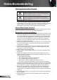 Gebruiksmededeling Waarschuwingen voor de oogbescherming ▀■ Kijk nooit direct in de straal van de projector. Sta zo veel mogelijk met uw rug naar de straal gericht. ▀■ Wanneer u de projector in een klaslokaal gebruikt, moet u de studenten de gepaste richtlijnen geven wanneer u ze vraagt iets op het scherm aan te wijzen. ▀■ Om het lampvermogen te minimaliseren, kunt u blinden gebruiken die de lichtniveaus van de omgeving kunnen verminderen.