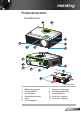 Inleiding Productoverzicht Hoofdeenheid 6 1 2 4 3 6 5 4 7 8 4 4 9 4 10 11 Luchtstroom 1. 2. 3. 4. 5. 6. Bedieningspaneel Scherpstelring Luidsprekerr Kantelafstelvoetjes Lens IR-ontvangers 7. 8. 9. 10. 11.
