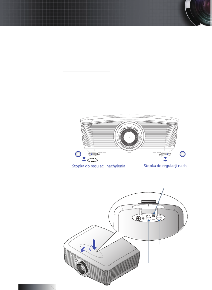 Projektor jest wyposażony w regulator wysokości, który umożliwia regulację