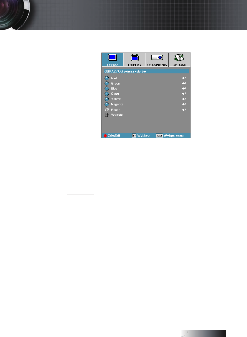 Zwiększenie lub zmniejszenie wartości koloru dla żółtego.