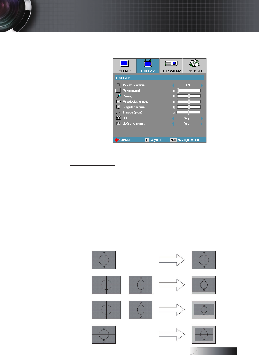 szerokoekranowego projektora. Część oryginalnego obrazu zostanie