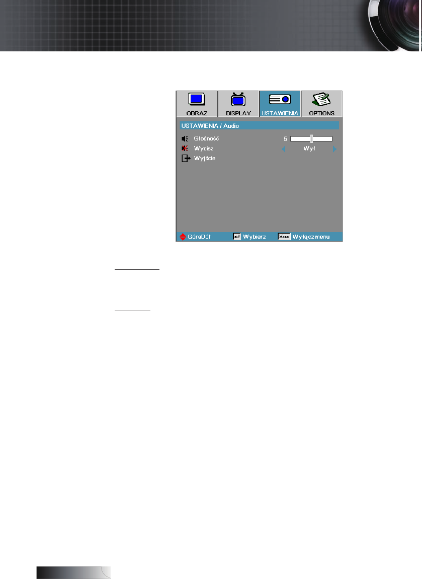 Regulacja rozmiaru projektowanego obrazu (WXGA)