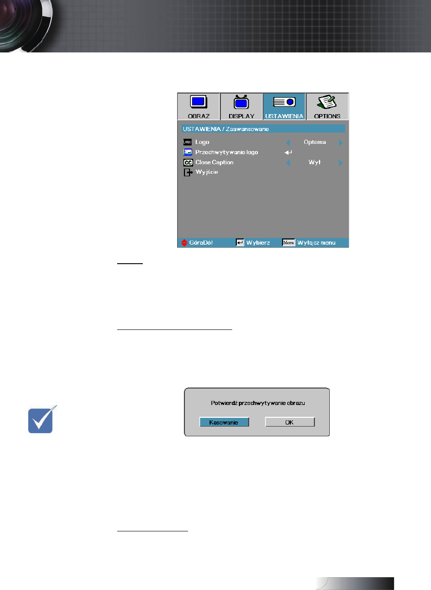Przechwycony obraz zostanie zapisany jako Uży tkownika w menu
