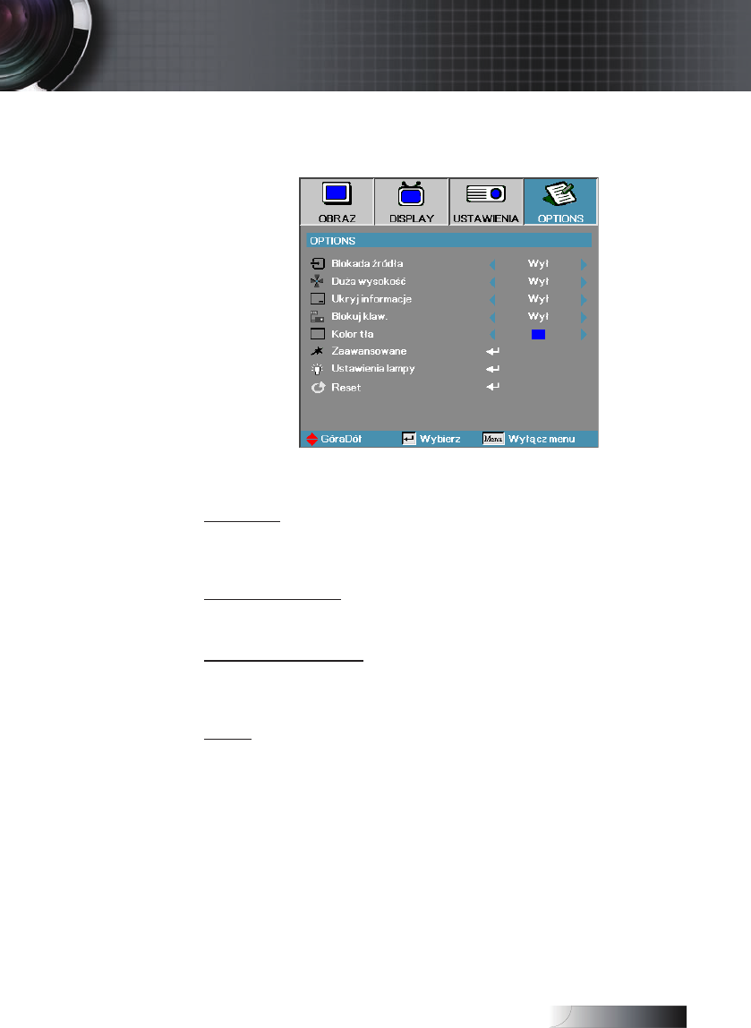 Resetowanie wszystkich opcji do wartości fabrycznych.