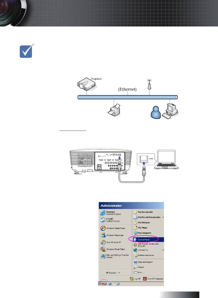 Funkcja LAN/RJ45 projektora działajaca przez sieć, taka jak zdalne