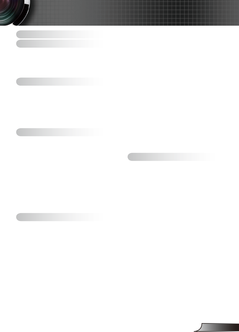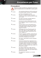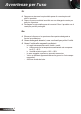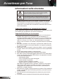 Avvertenze per l’uso Precauzioni Attenersi a tutte le avvertenze, precauzioni ed istruzioni per la manutenzione raccomandate in questa guida. ▀■ Avviso- Non guardare direttamente nell’ottica del proiettore quando questo è acceso. La luce brillante può ferire o danneggiare gli occhi. ▀■ Avviso- Per ridurre il rischio di incendi o di scosse elettriche, non esporre questo proiettore a pioggia o umidità. ▀■ Avviso- Non aprire o smontare il prodotto perché si possono subire scosse elettriche.