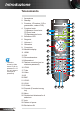 Introduzione Pannello di controllo 1 2 3 4 7 8 5 6 9 11 10 12 14 13 16 15 17 18 21 12. DVI-D 2. Pulsante di alimentazione 13. HDMI 3. Otturatore 14. Quattro tasti direzionali e di selezione 5. Zoom 6. Messa a fuoco 7. Cambio 8. VGA 1 9. VGA 2 10. Menu 11. Sincronizzazione 8 20 1. Off 4. Origine Italiano 19 15. Invio 16. YPbPr 17. BNC 18. Esclusione AV 19. Info. (Informazioni) 20. S-Video 21.