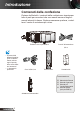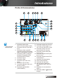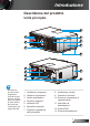 Introduzione Descrizione del prodotto Unità principale 4 1 5 4 2 6 3 7 8 12 9 10 11 13 NOTE Non ostruire le prese d’aria d’ingresso e d’uscita del proiettore e lasciare libero uno spazio di 30cm attorno alle prese per consentire il passaggio dell’aria. 1. Ventilazione (ingresso) 8. Ventilazione (uscita) 2. Obiettivo di proiezione 9. Pannello di controllo 3. Anello copriobiettivo 10. Porte per connessione di ingresso/uscita 4. Ricevitori infrarossi 5. Indicatori LED 6.