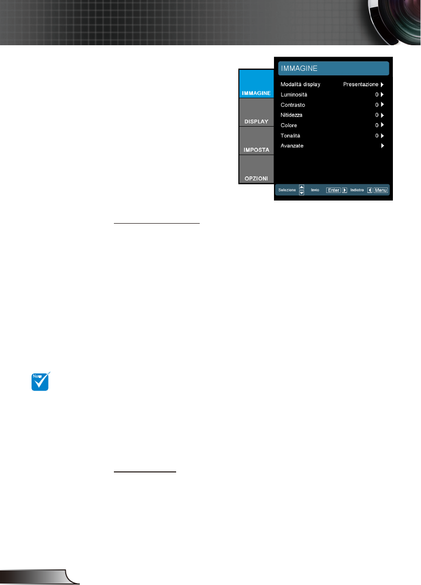 Vi sono diverse impostazioni predenite ottimizzate per vari tipi di