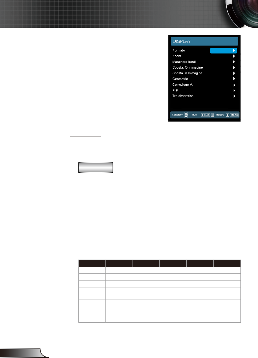 4:3: questo formato è per sorgenti di ingresso 4 x 3. `