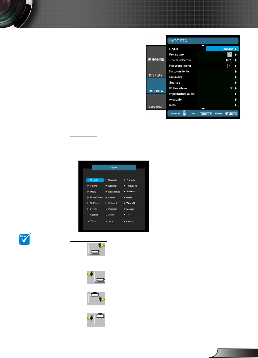 ondario e poi usare il tasto ▲ o ▼ per selezionare la lingua preferita.