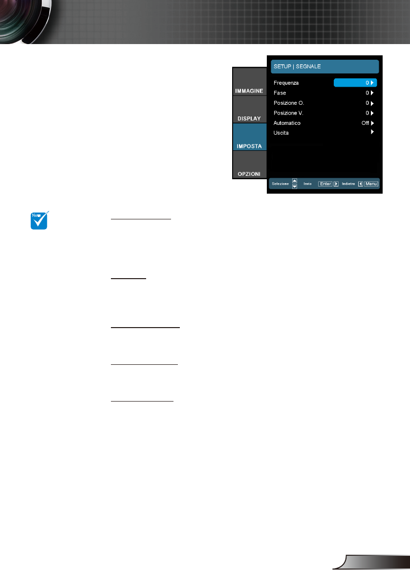 elementi Fase, frequenza sono in grigio, e se il Segnale non è