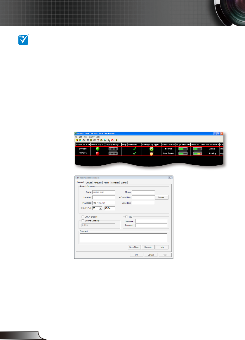 indirizzo IP). Crestron RoomView controlla ogni proiettore, lo stato