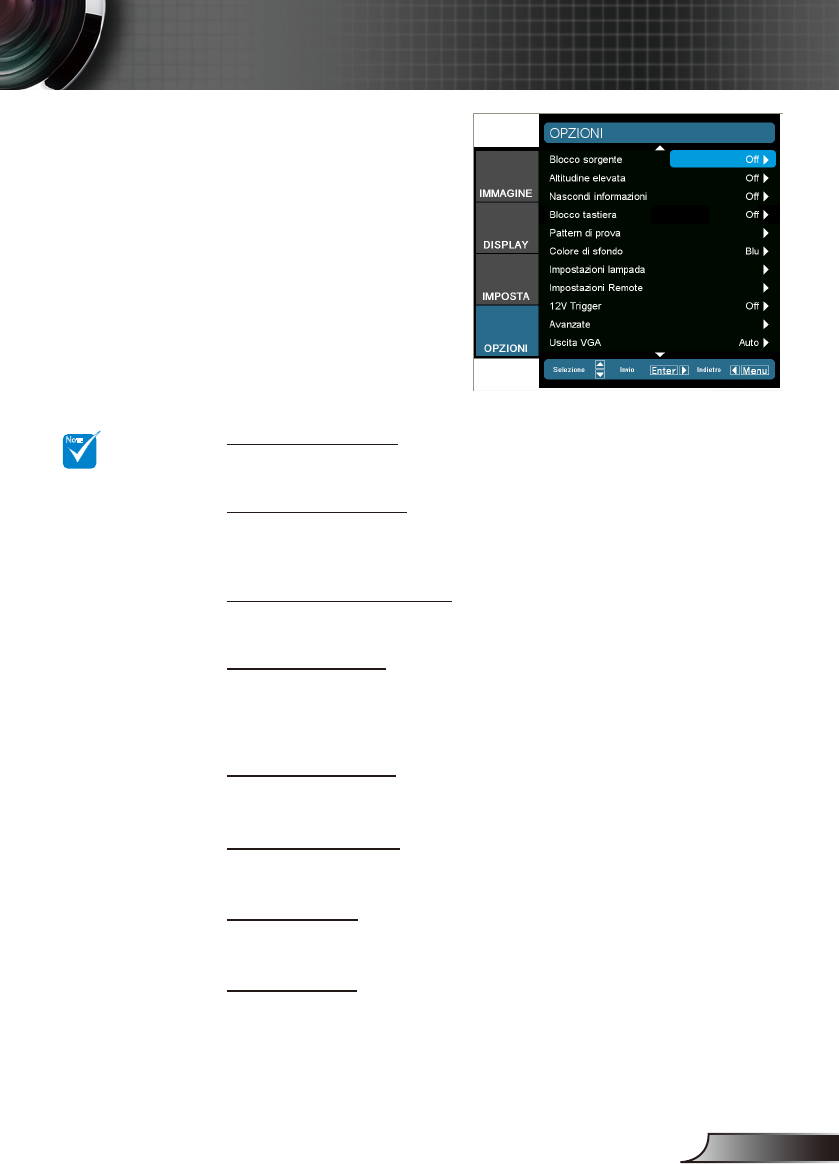 controllo sarà bloccato, però il proiettore può essere messo in fun-