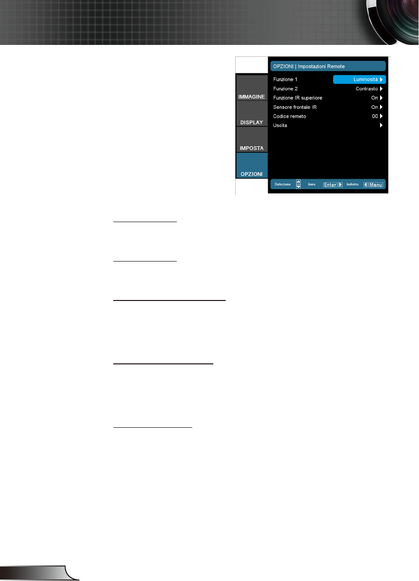 Quando questa funzione è su “On”, il proiettore può essere gui-
