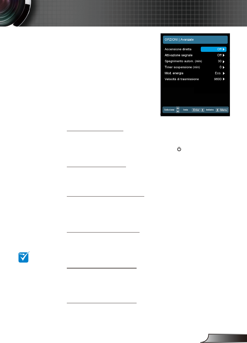 inviato al proiettore. Il proiettore si spegnerà automaticamente al