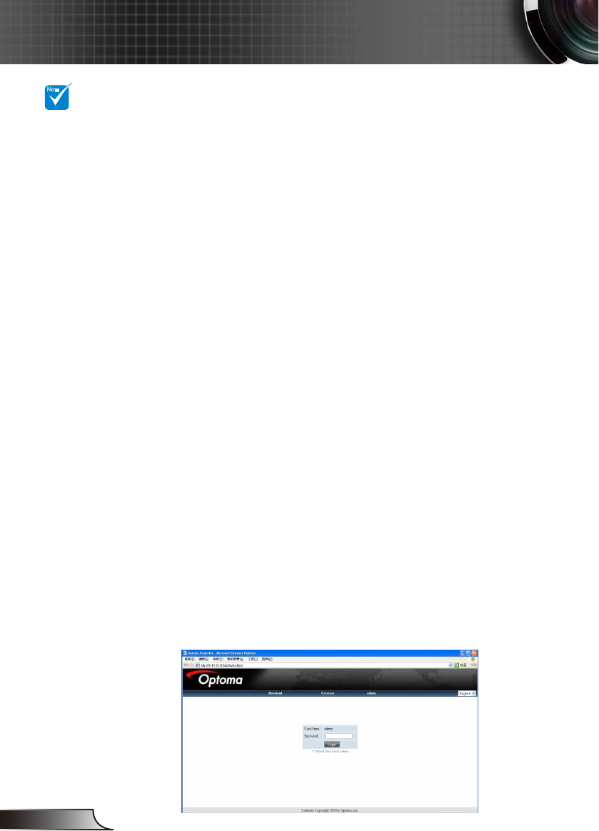 1. Avviare il browser web e inserire l’indirizzo IP del proiettore in