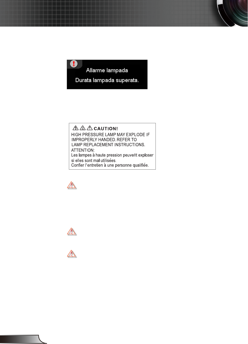 Un messaggio d’allarme verrà mostrato quando la lampada sorpassa