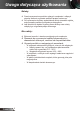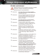 Uwaga dotycząca użytkowania Ostrzeżenia dotyczące ochrony oczu ▀■ Należy unikać bezpośredniego patrzenia/zaglądania w wiązkę projektora. O ile to możliwie należy stawać tyłem do wiązki. ▀■ Podczas stosowania projektora w klasach szkolnych, należy zwrócić uwagę uczniom, aby nie patrzyli na wiązkę światła, gdy poproszą o wskazanie czegoś na ekranie. ▀■ Aby zminimalizować zużycie prądu przez lampę, należy w celu zmniejszenia poziomu światła otoczenia, stosować zasłony w pomieszczeniu projekcji.