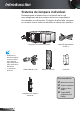 Apéndices Reemplazar la lámpara Se mostrará un mensaje de advertencia cuando la lámpara haya sobrepasado su vida útil. En este punto, se recomienda cambiar la lámpara lo antes posible. Póngase en contacto con su distribuidor local o con Optoma para adquirir la lámpara. Advertencia: si se realiza el montaje en el techo, tenga cuidado cuando abra el panel de acceso a la lámpara.