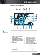 Introducción Panel de control 1 2 3 4 7 8 5 6 9 11 10 12 14 13 16 15 17 18 21 12. DVI-D 2. Botón de encendido 13. HDMI 3. Obturador 14. Botones de selección de cuatro direcciones 5. Zoom 6. Enfoque 7. Movimiento 8. VGA 1 9. VGA 2 10. MENÚ 11. RESINCRONIZACIÓN 8 20 1. Apagado 4. FUENTE Español 19 15. ENTRAR 16. YPbPr 17. BNC 18. SILENCIO AV 19. Info. (Información) 20. S-Vídeo 21.