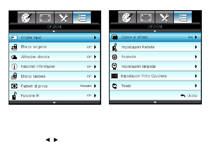 selezionare. Il proiettore non cercherà gli ingressi che non sono selezionati.