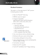 Introduction Product Features This product is a 720p single chip 0.62” DLP® projector. Outstanding features include: Native 16:9 720p DLP® Technology HDMI & component support. Computer Compatibility: Apple Macintosh, iMac, and VESA Standards: UXGA, SXGA+, SXGA, XGA, SVGA, VGA Video Compatibility: ■ NTSC M/J, NTSC4.
