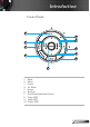 Introduction Product Overview Main Unit 1 2 3 4 6 5 8 7 9 1. 2. 3. 4. 5. English Control Panel Zoom Focus Zoom Lens IR Receivers 6. 7. 8. 9.