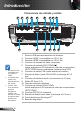 Introducción Conexiones de entrada y salida 1 2 3 4 VIDEO MOUSE/ SERVICE HDMI 1 HDMI 2 5 VGA1-IN/YPbPr/ VGA2-IN/YPbPr 6 7 VGA-OUT AUDIO1-IN (VGA 1/2) RS-232C 8 9 3D SYNC Out(5V) AUDIO OUT AUDIO2-IN (VIDEO) 10 11 1. 2. 3. 4. 5. Bucle en monitor compatible solo con VGA1-In/ YPbPr. La interfaz está sujeta a las especificaciones del modelo. La llave VGA es un accesorio opcional. Póngase en contacto con atención al cliente de Optoma para obtener más información. Español 10 6. 7.