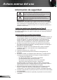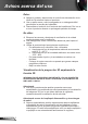 Avisos acerca del uso Precauciones Siga todas las advertencias, precauciones y procedimientos de mantenimiento recomendados en esta guía del usuario. NOTE Cuando la lámpara alcance el fi nal de su ciclo de vida, el proyector no se volverá a encender hasta que se reemplace el módulo de la lámpara. Para reemplazar la lámpara, siga los procedimientos descritos en la sección “Reemplazar la lámpara”.