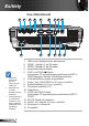 Esittely Tuotekuvaus Pääyksikkö 1 2 3 4 5 2 6 PO ER W 1 RCE SOU 5 8 7 SOURCE POW ER VIDEO 8 HDMI 2 AUDIO1-IN (VGA 1/2) 3D SYNC Out(5V) VGA2-IN/YP bPr RS-232C AUDIO OUT AUDIO2-IN (VIDEO) 11 10 1. 2. 3. 4. 5. 6. Suomi VGA-OUT HDMI 1 Käyttöliittymä on mallin teknisten tietojen mukainen. Älä tuki projektorin tulo-/ poistoilmaaukkoja.