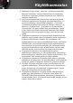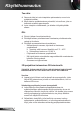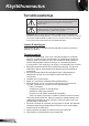 Käyttöhuomautus Silmän turvallisuusvaroitukset Suomi 6 ▀■ Vältä aina katsomasta suoraan projektorin säteeseen. Ole selin säteeseen niin paljon kuin mahdollista. ▀■ Kun projektoria käytetään luokkahuoneessa, valvo oppilaita asianmukaisesti, kun heitä pyydetään osoittamaan jotakin ruudulta. ▀■ Vähennä ympäristön hajavaloa huoneen verhoilla lampun tarvitseman virran minimoimiseksi.