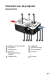 Overzicht van de projector Vooraanzicht 10 9 1 1 2 3 4 5 Instelbare voet aan voorzijde Projectielens Scherpstelring Sensor IRafstandsbediening op voorzijde Veiligheidsbalk 2 3 8 4 5 6 7 9 Luidspreker Ventilatieopeningen Bedieningspaneel Zoomring 10 Bovenkap 6 7 8 NL-7