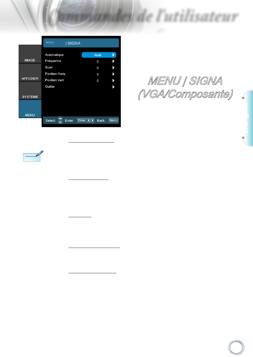 et la phase s'achent pour permettre à l'utilisateur un réglage