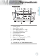 Wprowadzenie Porty połączeń 2 3 4 5 6 7 8 9 10 Polski 1 12 11 1. Gniazdo zasilania 2. Złącze 3D Sync Out (5V) 3. Złącze HDMI 2 (Obsługa v1.4a 3D) 4. Złącze HDMI 1 (Obsługa v1.4a 3D) 5. USB do aktualizacji firmware 6. VGA-IN/YPbPr/ 7. Złącze RS-232 (9-pinowe) 8. Złącze wejścia Component Video (YPbPr) 9. USB do zasilania (5V@1,5A) 10. Gniazdo blokady Kensington 11. Złącze wejścia Composite Video 12.