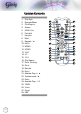 Kullanıcı Kontrolleri Uzaktan Kumandayı Kullanma Enter Re-sync Öğe seçiminizi onaylayın. 1. Projektörü otomatik olarak giriş kaynağına senkronize eder. (Yeniden-senk) 2. OSD içindeki ayarlarda gezinti ve değişiklik /► yapılmasını sağlar. Keystone 1. Görüntü Anahtar Taşı'nı negatif olarak ayarlayın. (Anahtar Taşı) 2. OSD içindeki ayarlarda gezinti ve değişiklik -/▼ yapılmasını sağlar. Menu (Menü) Not Her bir ülke için uygulamalardaki farklılık nedeniyle, bazı bölgeler farklı aksesuarlara sahip olabilir.