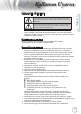 Kullanım Uyarısı Önlemler Lütfen bu kullanıcı kılavuzunda tavsiye edilen tüm uyarılar, önlemler ve bakımı izleyin. Not Lamba ömrünün sonuna ulaştığında, lamba modülü yenisiyle değiştirilene kadar projektör açılmayacaktır. Lambayı yenisiyle değiştirmek için, "Lambayı Yenisiyle Değiştirme" bölümü, sayfa 50 altında listelenen prosedürleri izleyin. 4 ▀■ Uyarı- Lamba açıkken projektörün merceğinin içine bakmayın. Parlak ışık gözlerinize zarar verebilir.