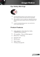 Table of Contents Table of Contents.............................1 Usage Notice....................................2 Safety Information................................2 Precautions..........................................3 Eye Safety Warnings...........................5 Product Features.................................5 Introduction.......................................6 Package Overview...............................6 Product Overview................................7 Main Unit...........................
