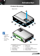 Introduction Product Overview Main Unit 1 7 2 6 3 5 4 The interface is subject to model’s specifications. Do not block projector in/out air vents. 9 7 8 2 1. P OWER button and LED indicator 2. Ventilation (inlet) 3. Zoom Ring 4. Focus Ring 5. 6. 7. 8. 9.