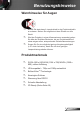 Inhaltsverzeichnis Inhaltsverzeichnis.............................1 Benutzungshinweise........................2 Sicherheitshinweise.............................2 Vorsichtsmaßnahmen..........................3 Warnhinweise für Augen......................5 Produktmerkmale.................................5 Einführung........................................6 Lieferumfang........................................6 Produktübersicht..................................7 Projektor.......................................