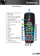 Bedienung Fernbedienung Verwenden der Fernbedienung Power Siehe „Ein-/Ausschalten des Projektors” auf Seite 12-13. L-Taste Keine Funktion R-Taste Keine Funktion Seite aufwärts Keine Funktion Seite abwärts Keine Funktion Eingabe Quelle Mit dieser Taste bestätigen Sie Ihre Auswahl. Durch Drücken auf „Quelle” wählen Sie eine Signalquelle aus. Neusynchronisation Durch Drücken dieser Taste wird der Projektor automatisch mit der Eingabequelle synchronisiert.